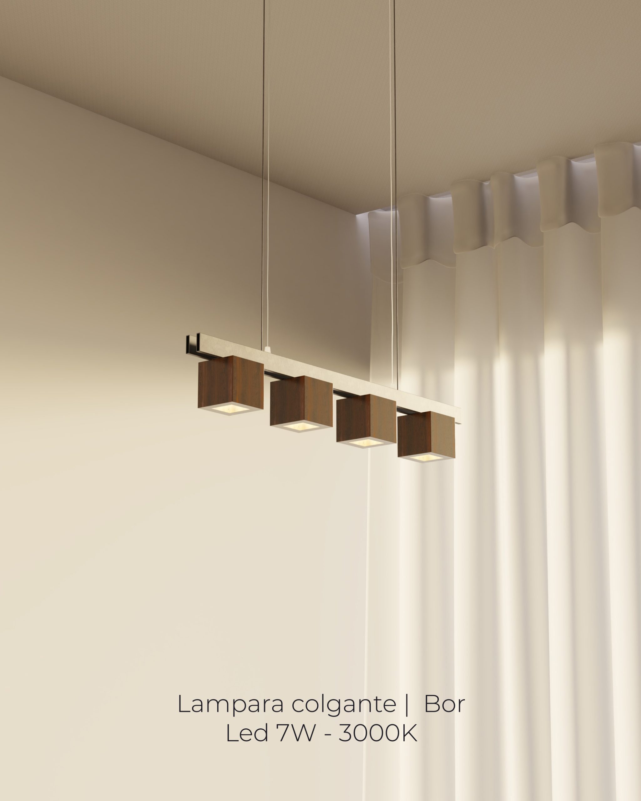Diseñada para generar una luz focal precisa y una atmósfera cálida, envolvente. Su estructura de hierro contrasta con la calidez de la madera maciza de guayubira, creando una pieza equilibrada y con carácter. Ideal para colocar sobre una mesa de comedor, una mesa ratona o como punto de acento en espacios comerciales.